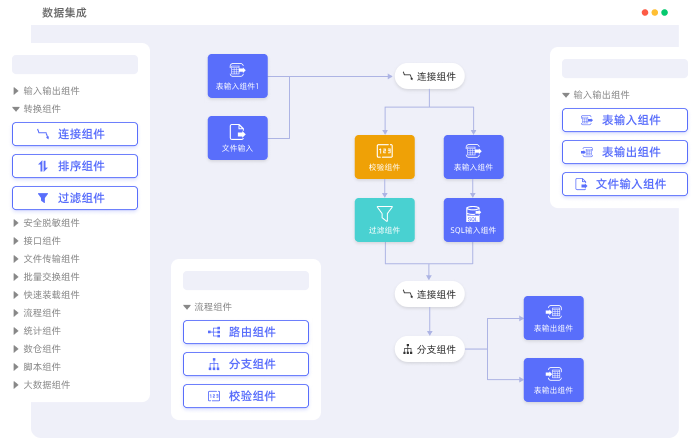 数据集成 基于大数据引擎,实现多源异构亿级数据的传输、加载、清洗、转换及整合。可视化 “零SQL” 实现统一开发、调度、监控,满足一切数据开发需求。 一站式建模与ETL 30+异构数据源 亿级数据同步与开发 面向大数据的架构设计